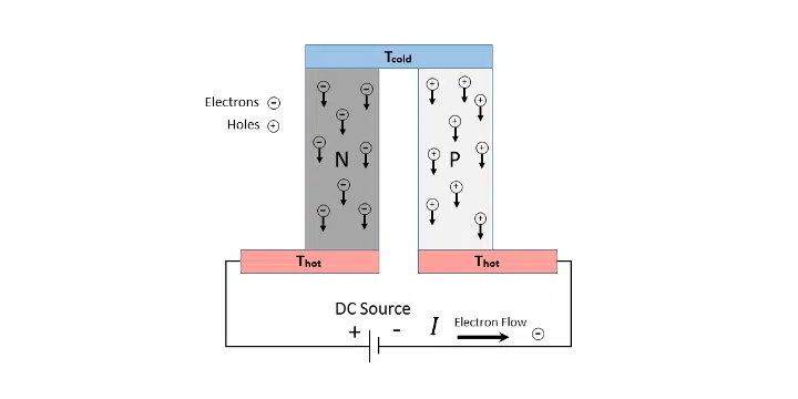 In thermoelectric cooling and thermoelectric power generation, a hole is simply the absence of an electron when an electron moves from the valence band to the conduction band. The material does not have a limited supply of holes and they are not “used up” during operation. Charge carriers continually move within the semiconductor lattice, so a thermoelectric module does not lose performance because of hole depletion.